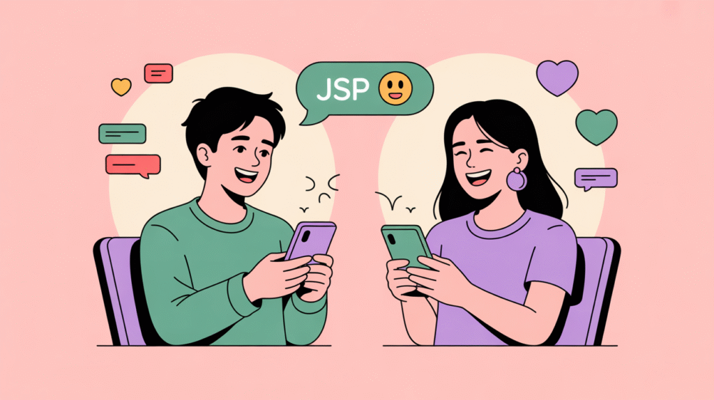 In most casual conversations, “JSP” is used in a friendly or humorous tone — not literally or technically. But yes, in programming contexts, “JSP” can also refer to JavaServer Pages (a web technology). Totally different world though! 🌐